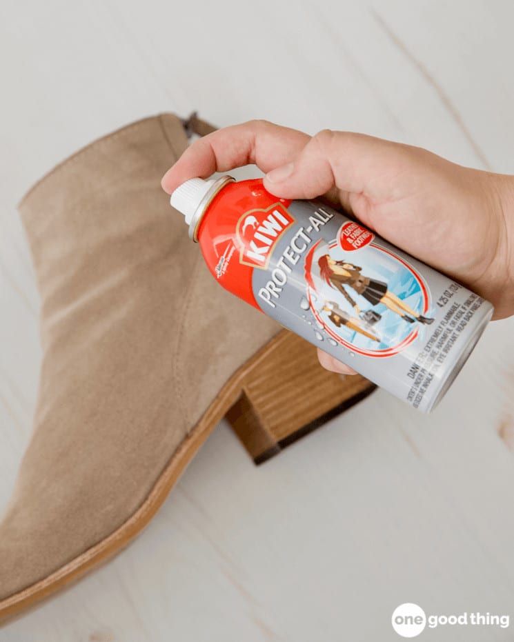 - Appliquez le spray protecteur selon les recommandations du fabricant pour préserver la matière plus longtemps.