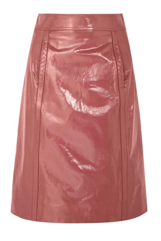 À shopper : Jupe crayon en cuir breveté BOTTEGA VENETA à 820£ sur The Outset