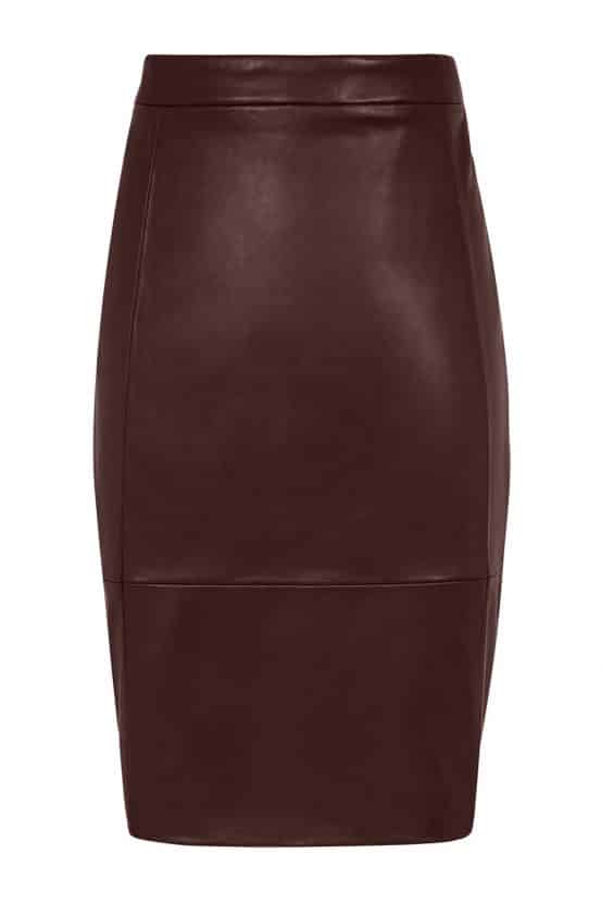 À shopper : Olivia Stretch Panel Jupe en cuir ox blood à 195£ chez Reiss
