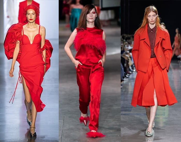 Le rouge flamme ne cherche pas à se faire discret. Déjà plébiscité par Rochas ou Prabal Gurung, il s’affiche sans complexe de la tête aux pieds.